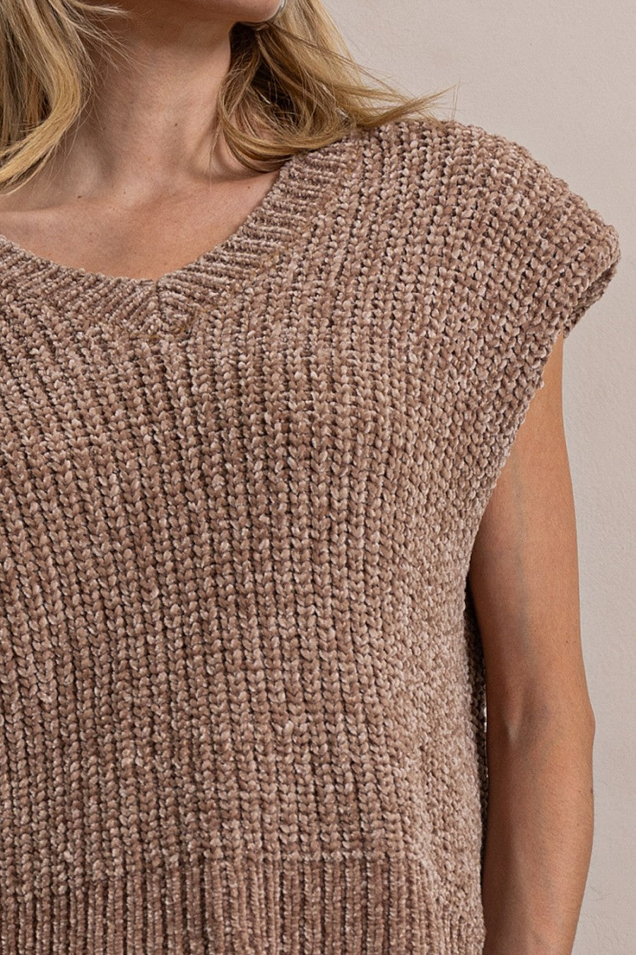 KNITTED SHOULDER PAD VEST TOP - TAN