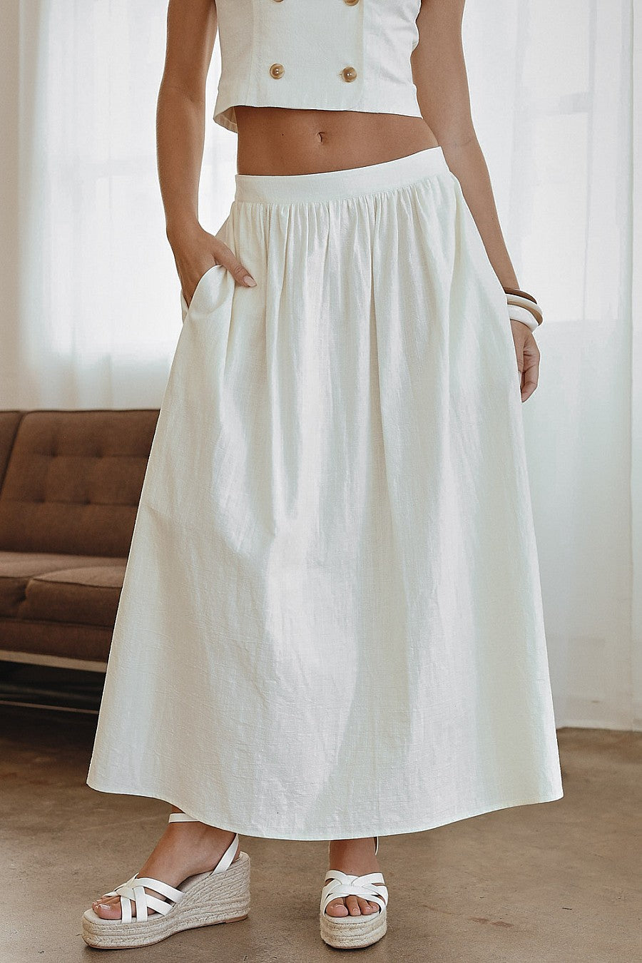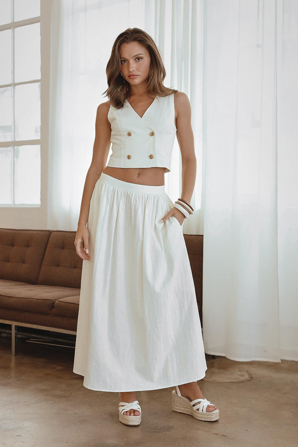 WOVEN COTTON BUTTON SKIRT - CREAM