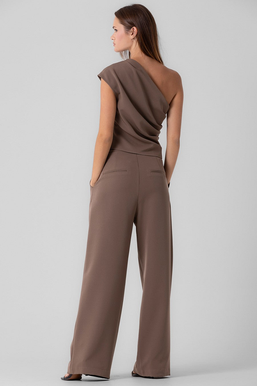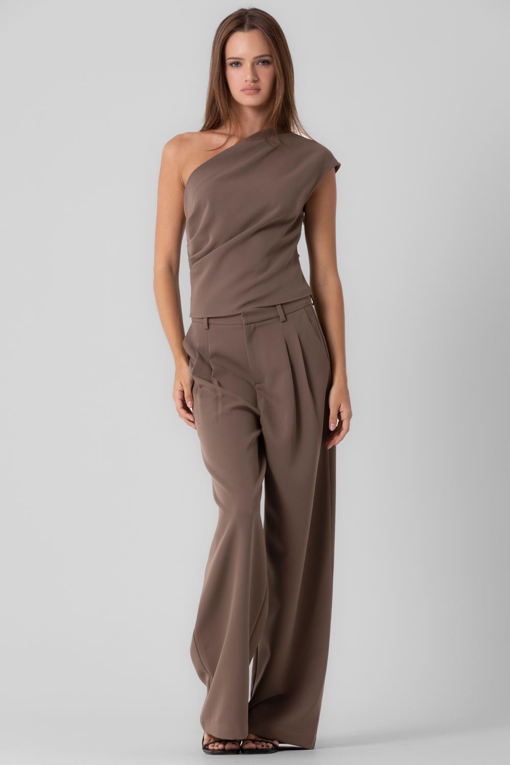 WOVEN PLEATED ONE SHOULDER TOP - TAUPE